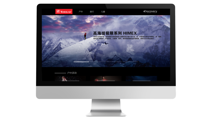 打破常规网站建设风格,以简约设计、对比色彩运用,更符合户外运动爱好者追求的“极致”精神。