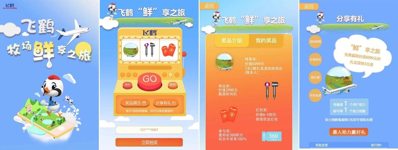 NineGame成立专属项目小组,前端采用H5交互形式、后台与内部营销系统对接,实现线下购买、线上互动抽奖的活动形式,并且加入多种助力有奖场景,促进活动传播,本次活动,实现了线上、线下的营销闭环,为飞鹤品牌影响力的提升和产品销售的增长提供了强大支撑。