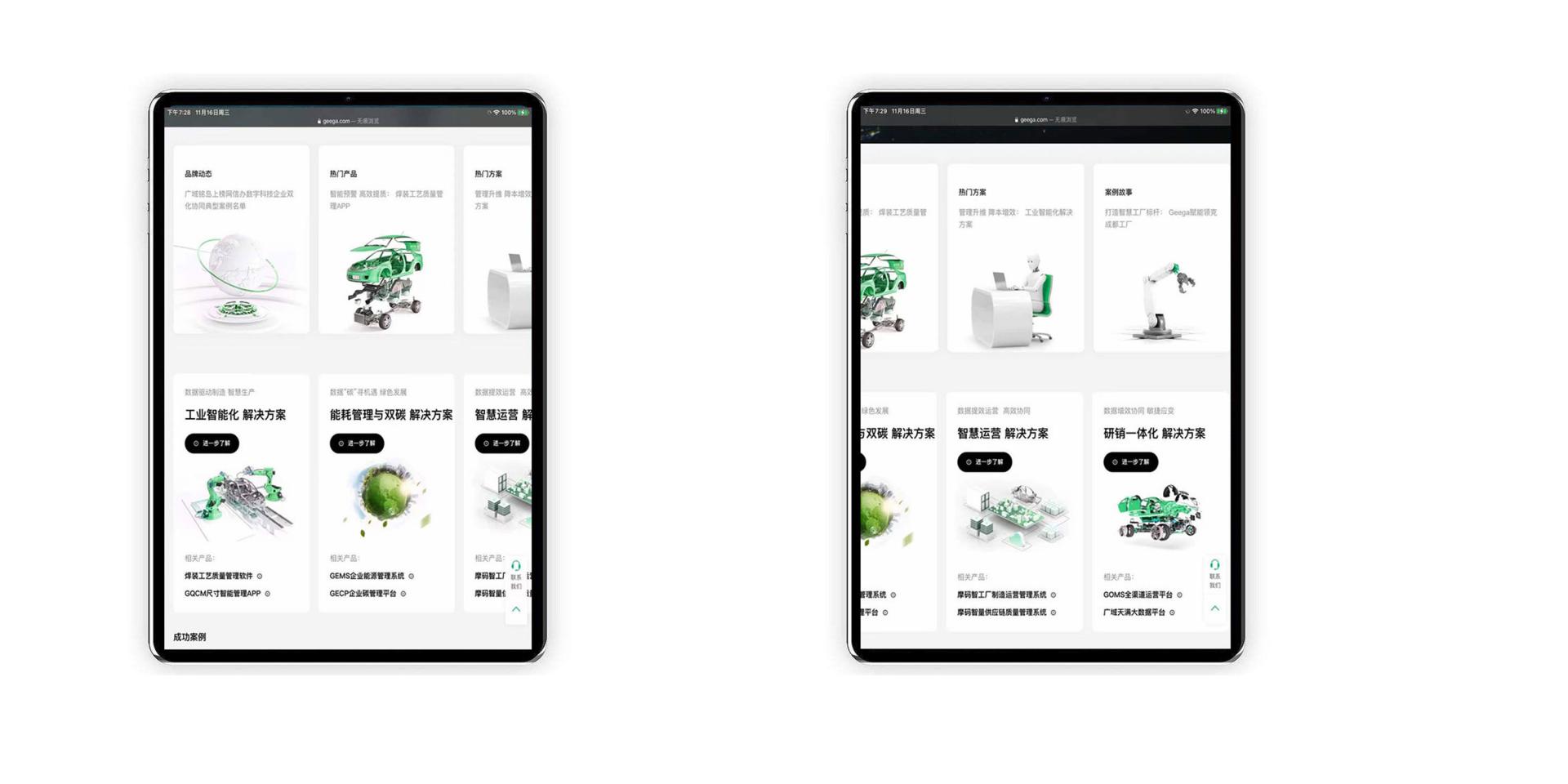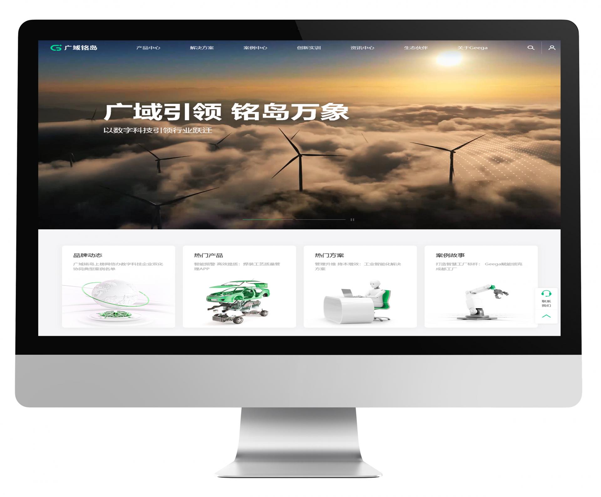在本次改版升级重在塑造全新的互联网企业形象,首先在全站色彩布局设计上采用了“灰白绿”色,主要以绿色作为主基色,并且融合企业VI属性,形成深刻印象进而提升品牌竞争力。其次,在NineGame布局上进行了优化,网站UI设计中假如3D元素风格更加符合企业品牌定位,提升视觉冲击力外,更好地传达广域名岛品牌理念,提升品牌用户体验。最后,我们将热门产品、热门解决方案、成功案例等信息融合一体,呈现在NineGame最突出的位置上,这有利于广大受众群体快速了解到广域铭岛的实力及品牌,更有利于品牌营销宣传。